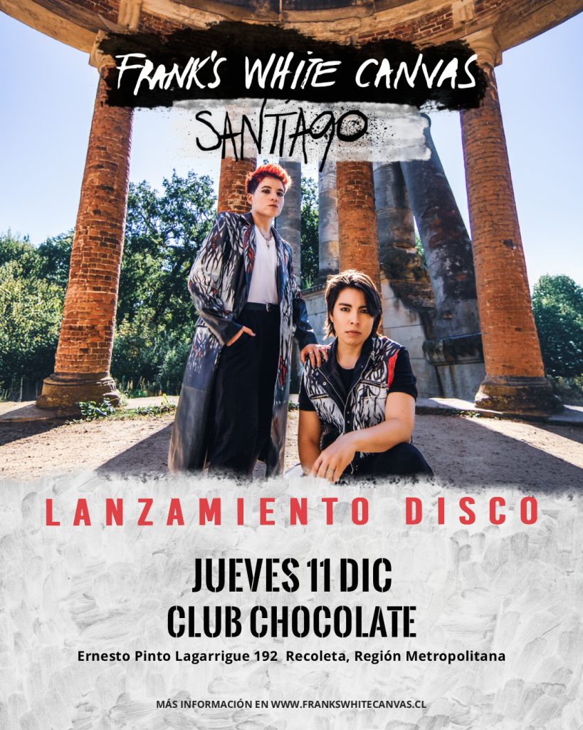 Frank’s White Canvas se prepara para su regreso a los escenarios de Chile con una gira que recorrerá siete ciudades en diciembre. El tour comenzará el 4 de diciembre en Concepción y pasará por Temuco, Puerto Montt, Valdivia,. Santiago (11 de diciembre en Club Chocolate), Valparaíso y La Serena. Toda la información está en www.frankswhitecanvas.cl.Con “Circles”, Frank’s White Canvas continúa revelando las múltiples capas de. “This Will Hurt, This Will Heal”, un trabajo que se vislumbra como el más ambicioso y honesto de su carrera hasta ahora.